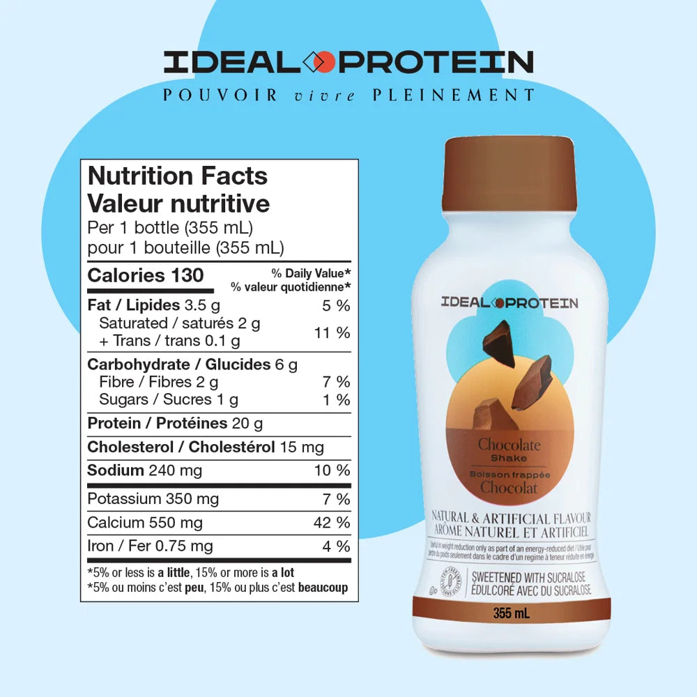 Offrez-vous un instant chocolaté et équilibré ! Commandez dès aujourd’hui la Boisson frappée chocolat prête à boire Ideal Protein et savourez chaque gorgée comme un moment de douceur et de gourmandise. Une boisson pratique, riche en protéines et délicieusement chocolatée, idéale pour vos journées actives et vos pauses bien méritées.