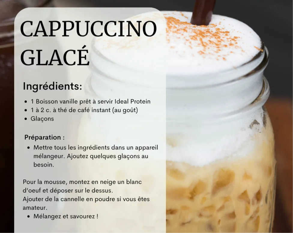 Offrez-vous un moment de douceur et d’équilibre ! Commandez dès aujourd’hui la Boisson frappée vanille prête à servir Ideal Protein et savourez chaque gorgée comme un instant de réconfort et de vitalité. Une boisson gourmande et pratique, idéale pour vos journées actives et vos pauses bien méritées.
