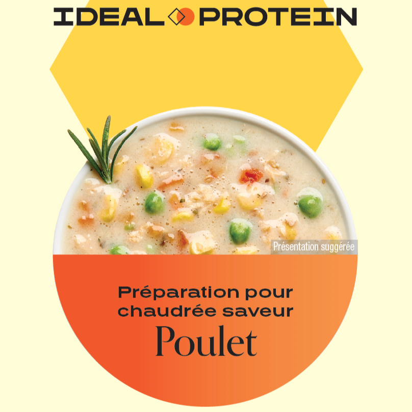 Offrez-vous un moment de réconfort gourmand ! Commandez dès aujourd’hui la Préparation pour chaudrée saveur poulet Ideal Protein et savourez chaque cuillerée comme un instant de douceur et de réconfort. Savoureuse, consistante et riche en protéines, cette chaudrée deviendra rapidement un incontournable de vos journées actives et de vos soirées cocooning.