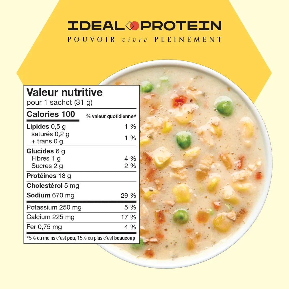 Préparation pour chaudrée saveur poulet Ideal Protein : un bol réconfortant et protéiné