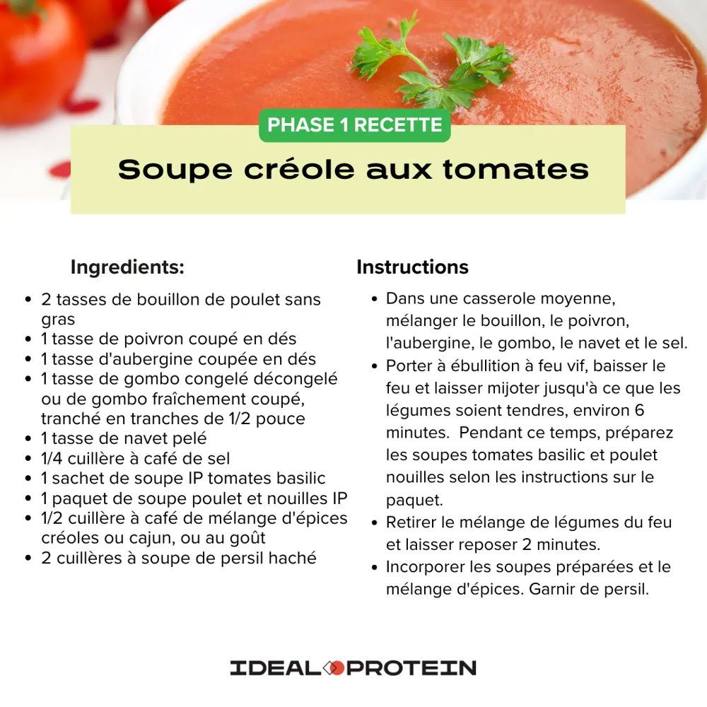 Préparation pour soupe tomate basilic Ideal Protein : une pause réconfortante et riche en protéines Savourez la Préparation pour soupe... En savoir plus